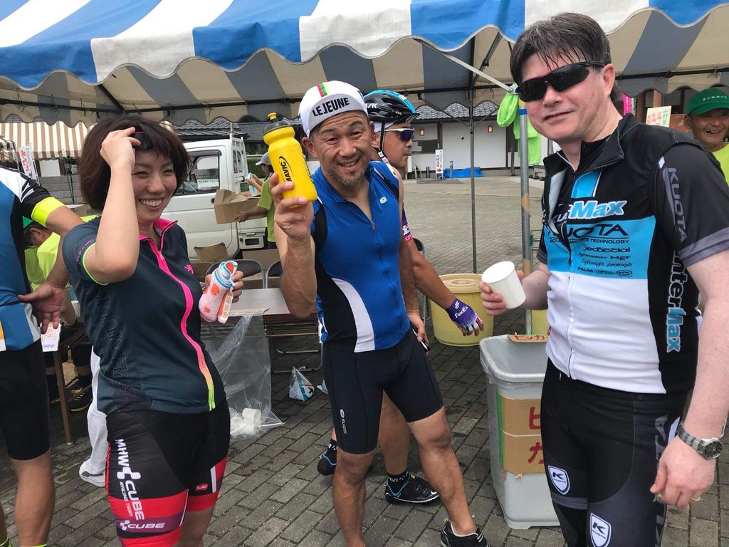 仲間を励まし合い、途中の休憩スペースで美味しいご当地ものを食し、ゴールの後は温泉へ。