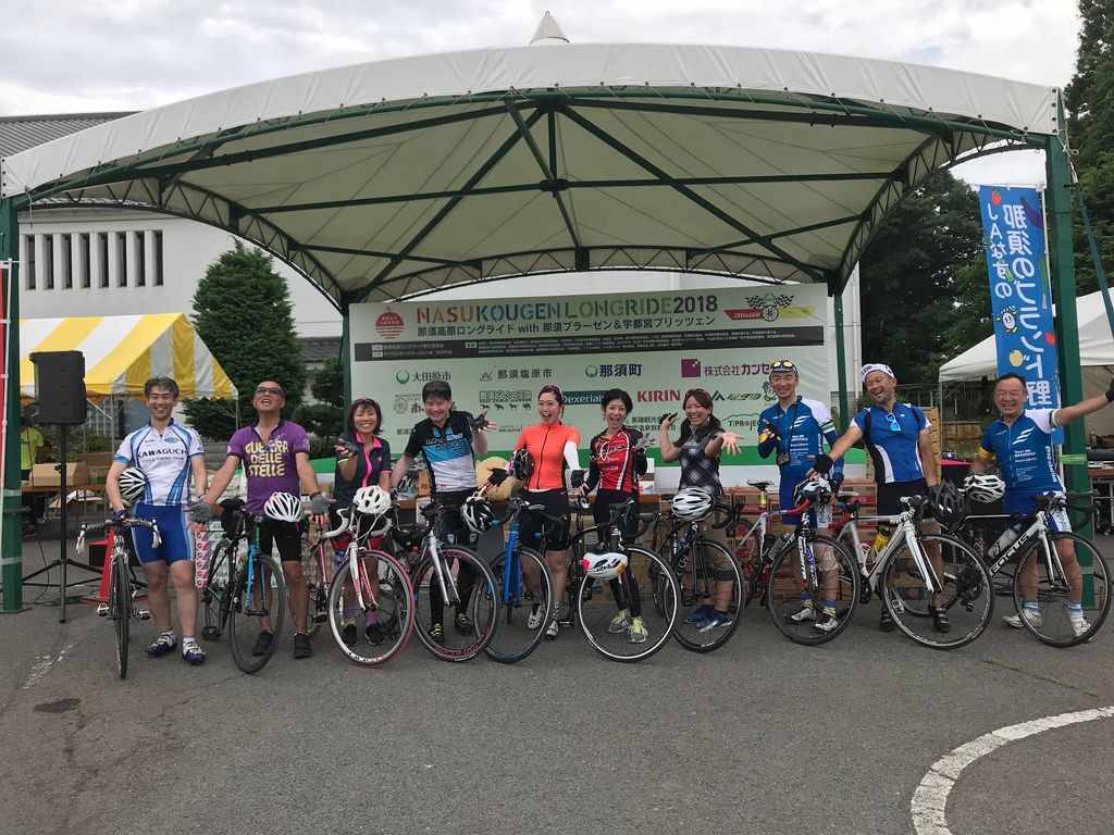 ③2018年那須高原ロングライドに出場しました。友達の紹介で東原健介(左端)さんという方と一緒に走りました。彼は、大宮にある宇宙劇場の館長さんでした。
