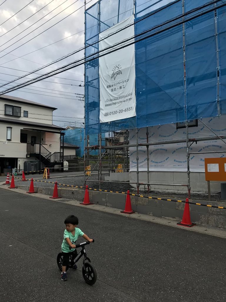 私の自宅近くでご依頼頂いている新築のオウチで、「だいくさ~ん」と叫ぶのが楽しい様子。