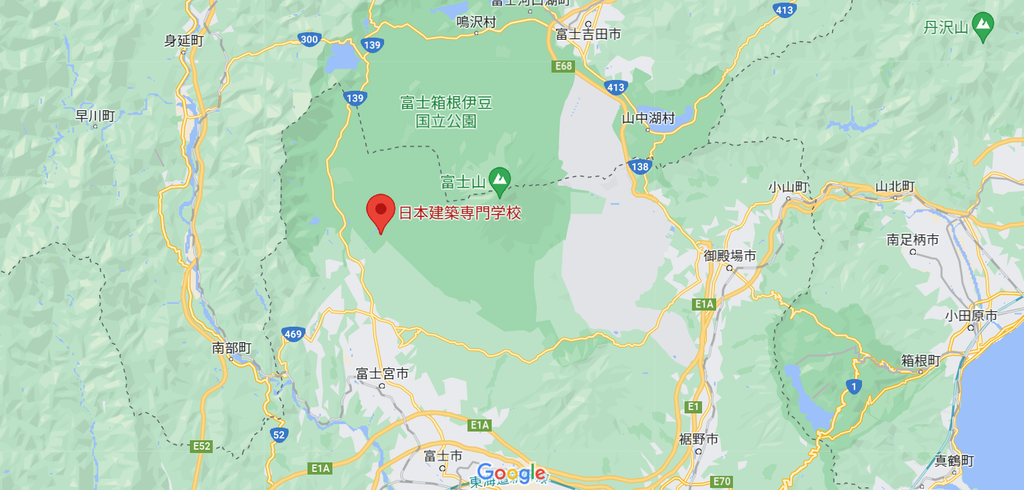 グーグルマップで確認すると、「ほぼ富士山🗻(笑)」。この何にもない環境で、私たちは4年間、寝食を共にし日本建築を学びました。