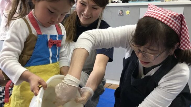 ばなな保育園、味噌作り体験の日 大豆をモミモミ、麹とまぜまぜ 塩を入れてモミモミ…