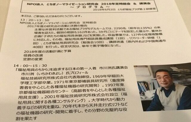 理事を勤めているNPOとちぎノーマライゼーション研究会の定時総会と講演会へ 福祉…