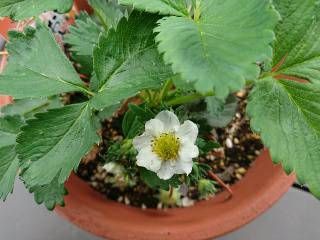 ばなな保育園のベランダに植えてある イチゴの苗。 宇都宮の苗屋さん「日光種苗」さ…
