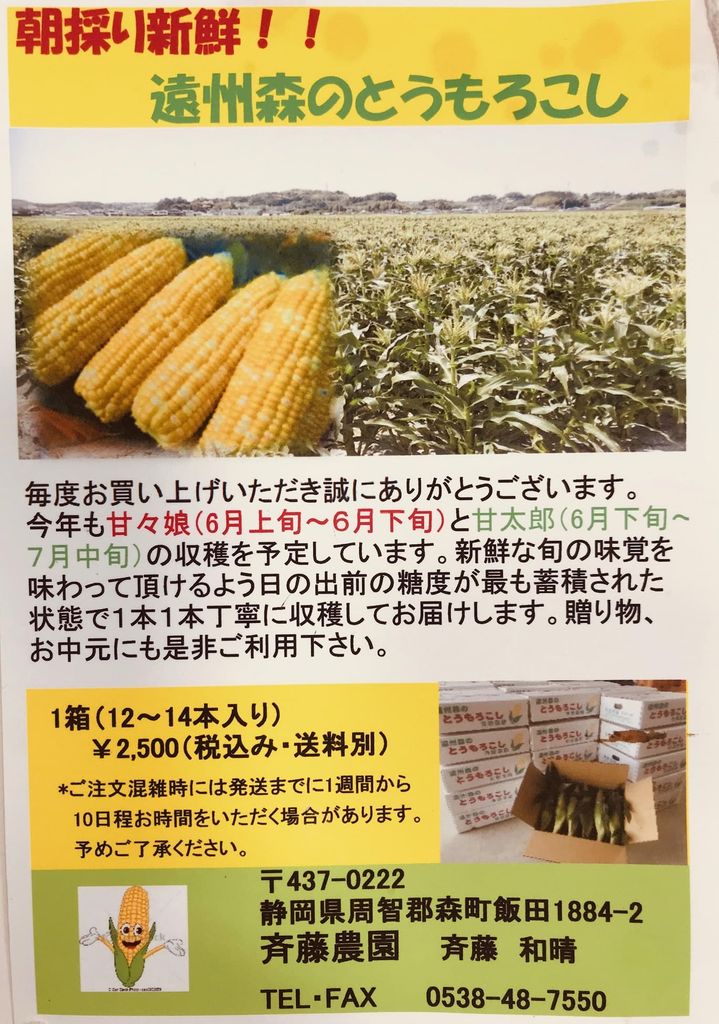 0538-48-7550 斉藤農園 「宇都宮の山口弘人から聞いたとお伝えください」