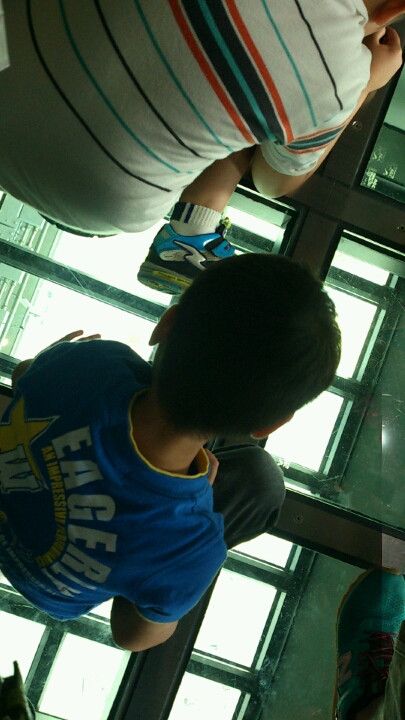 そして地上340㍍のガラス張りの床に座り込み動かない、長男&次男…
