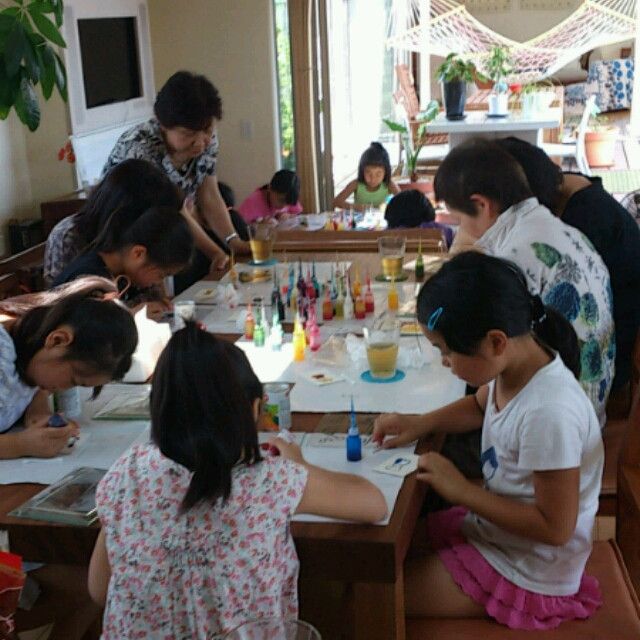ディンプルアートは車のフロント硝子をリサイクルした塗料を使って作るぬり絵感覚で出来るステンドグラスの様なアートで、先生のご指導のもと、皆様夢中で製作していらっしゃいました