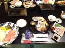食事は肥後の赤牛のステーキに馬刺し等々