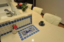 材質も一般的なセタミック系からガラス系、アクリル樹脂系などいろいろあり、カラー、テクスチュアなど種類も豊富で、自由度の高いデザインを楽しめるのがモザイクタイルの魅力ですね。