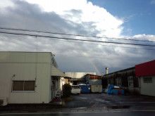 会社の倉庫の向こう側(東方面)に虹が出現![]()