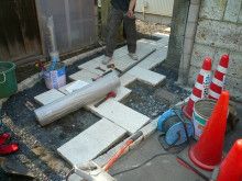 アスファルトを解体し、そこに、縁石、踏み石を並べました。