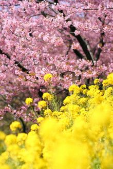 特にピンク色の桜と黄色の菜の花の