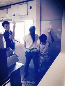 H様邸ご家族様と弊社社長山口もご一緒しタイル貼りを行いました。