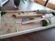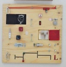 木の板にいろいろなものを付けて