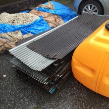 以前の納屋で使われていた外壁材料。普通でしたら簡単に廃棄するところを、