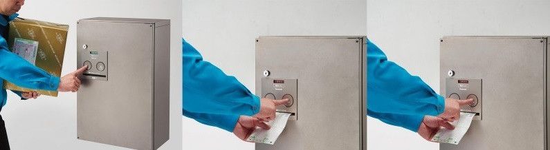 宅配やさんが荷物を入れて、伝票を差し込むと
