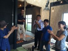 朝からご近所さんが興味津々で元理容室の建物がどう生まれ変わったかを見に来てくれました。