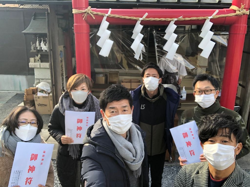 今年の仕事初めも、新年恒例初詣に出掛け(神社もソーシャルディスタンス仕様でした。)その後、各自『今年の一文字』を発表。