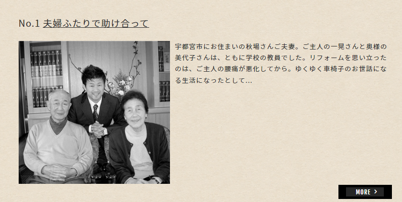 そのご自宅改修の様子を、ビフォー&アフターの写真で紹介することはもちろん、他にこの足跡を残す方法はないかと模索し、『家族の絆物語』というコーナーをweb上に開設しました。その後連続で続けること200か月。お客様が顔を出してご自宅を紹介して下さるということが、どれだけ私たちの応援、後押しに繋がったかと想像すると、1組1組のお客様への感謝の思いが込み上げてきます。