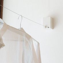 この商品は、壁と壁の間にワイヤーを張ってハンガーを掛けるタイプの商品です。