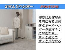 もう一つの商品は、一見するとコートハンガー・帽子掛けに見えますが、分解するとアッという間に2連のハンガーパイプ物干しに早変わりします。