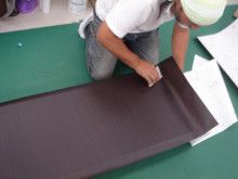熟練の職人さんが、専用の工具でテキパキと貼っていきます。