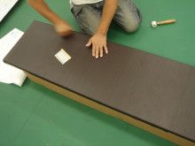 現在進行中のマンションリフォームで、部屋の出入り口ドアは新規で交換するのですが、室内の収納扉は既存を利用するのですが、出入り口ドアと色柄が異なってしまう為、化粧シートを貼ってイメージをドアに合わせる事になりました。