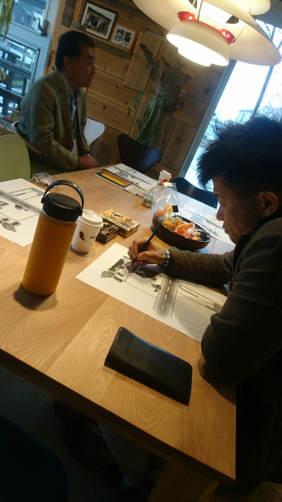 ミーティングでは、集まった仲間で自分の思い描くアイディアスケッチを描き、発表し合いました。