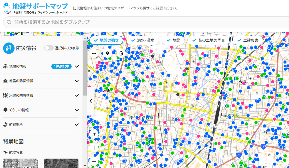 過去のデータから知りたいエリアの地盤状況を分かりやすいレポートにまとめて出力してくれます。参考ドクターリフォームのエリア地盤は?