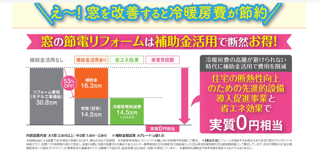 こちらは、あくまでもモデルケースですが、リクシルさんから頂いた情報の中に、分かりやすく記載されていたものがありましたので、添付致しました。今後は、電気料などの冷暖房費も嵩むことが予想されるので、お得感は益々増していきそうです。