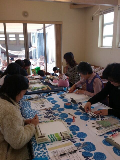 本来は木枠にタッカー(大きいホチキスのようなもの)で布を止めて製作しますが、