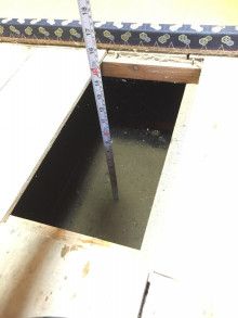 すぐに2か所に穴をあけポンプを設置。なかなか下がらない水位がその水量を物語ります。