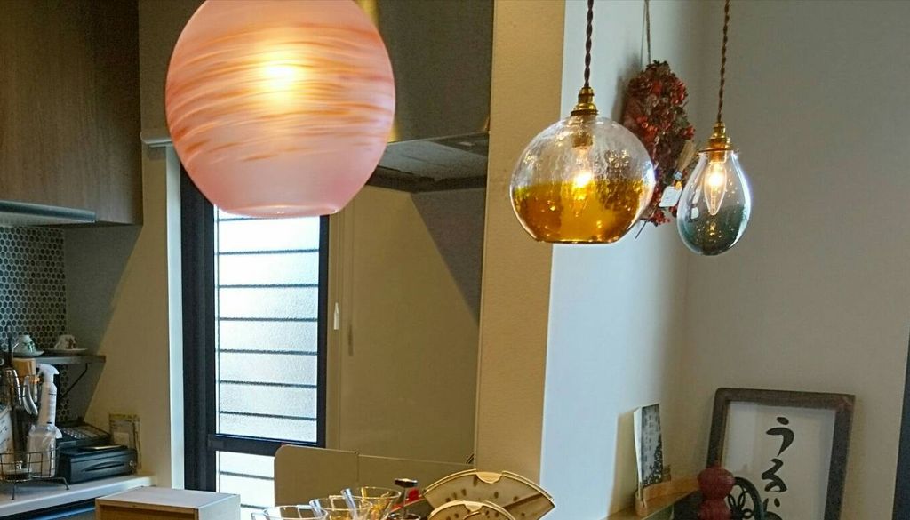 頭上に下がっているランプは