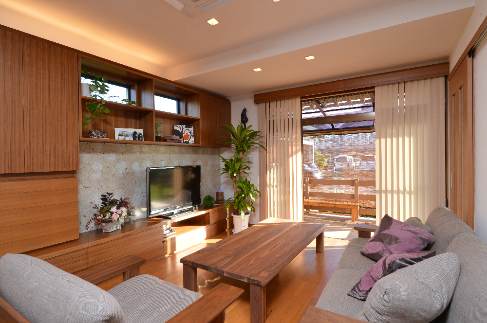 S様もお孫さんを含めると6名以上。ここに親戚やお友達が加われば、10名の大台も軽く超えます。この事例でも、壁を取り払い、2部屋を1つに。TVボードや収納も提案したことで、よりスッキリと片付いた形で広く利用できる空間をご提供させて頂きました。