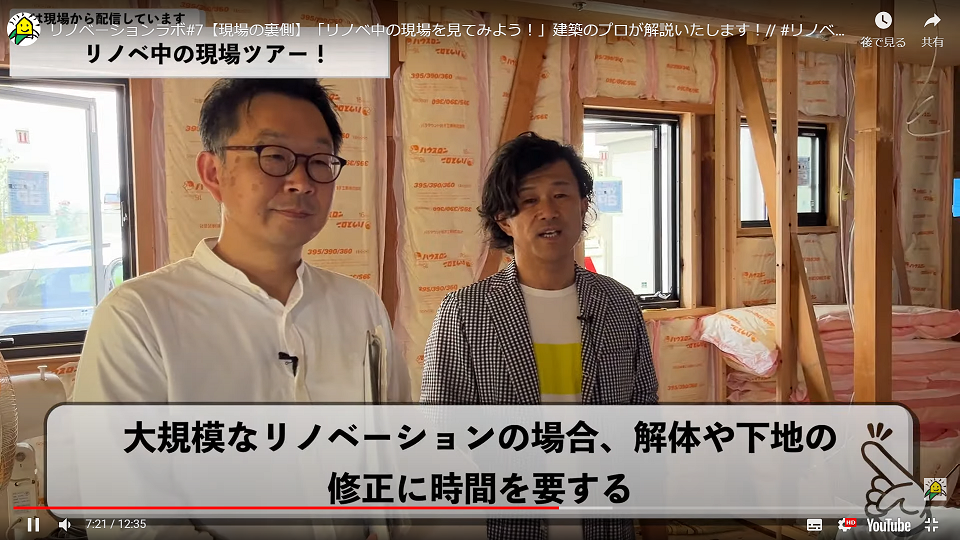 本日ご紹介するドクターリフォームのYouTubeチャンネルリノベーションラボ#7は『リノベ中のゲンバを見てみよう!』。