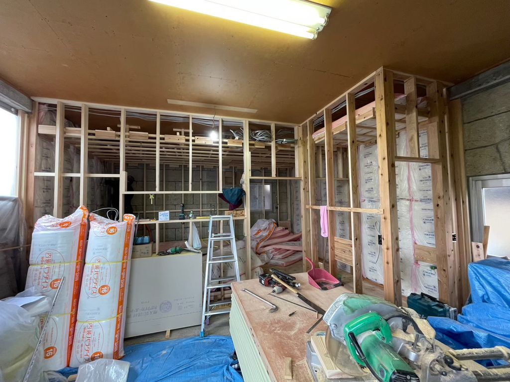 まったく使っていなかったわけではないのですが、かつての農業倉庫が、物入になっていた。といった状態で、「お菓子づくりを仕事にしたい。」と話す娘さんを、ご両親が「ここ使っていいぞ!」と応援してくれた形で動き出した事例です。☟工事中の写真。