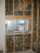 写真右下 → 外壁側壁下地の間に断熱材(グラスウール)が設置されました。