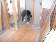 写真右下 → 下地修復状況(以前この部分で漏水があったらしく、フローリング下地のベニヤの層が剥がれてしまっている状況でしたので、部分的に交換することに決定しました。今回の場合、費用の方は今回の工事範囲内で納めております。)