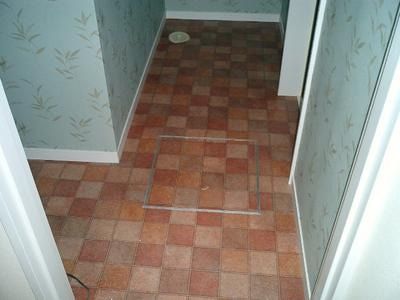 床材の裏側にクッションがありこれが階下への音の響きをやわらげます。歩くとふわふわした感じがするのが特徴です。決して不良品ではありませんのであしからず。