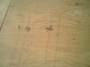 墨出し作業をして間仕切り間部の位置を決めていきます。そしてその墨の位置に沿って柱を立てて壁を作っていきます。