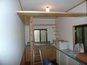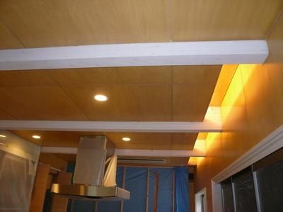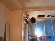 写真1…ダイニング天井・壁にシナベニヤが貼られた状況です。