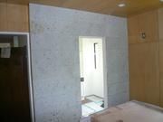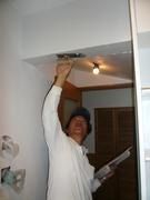写真3…左官屋さんが天井に珪藻土を塗っているところです。