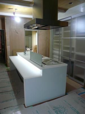 写真1…システムキッチンが搬入され組立を行っているところです。