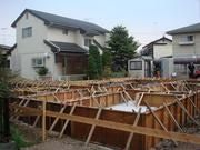 基礎が完成し、いよいよ大工工事。たくさんの太陽を浴びて笑顔が毎日いっぱい見られるような家を職人一同、力を合わせ安全に進めて参ります。