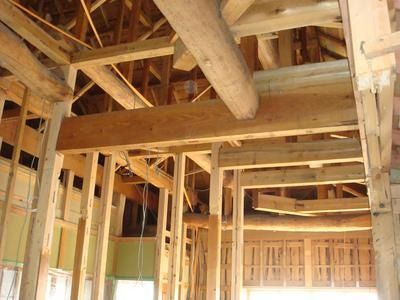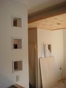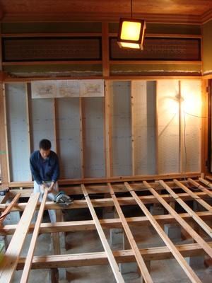 柔らかなムク材を天井に貼り、床には家族みんながお気に入りの堀コタツ。LDKの大工工事は終了し続いて子供部屋となる和室の工事へ。