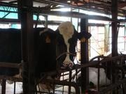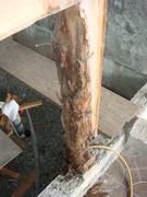 長年の湿気で腐っている柱(写真)や土台もシッカリ交換して気持ちよい空間つくりをカワイイ牛たちに見守られながらガンバリマス!