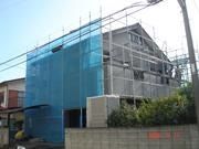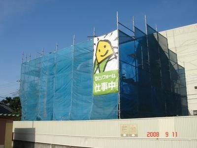 外部に足場を掛け、ばななくんもニッコリ!