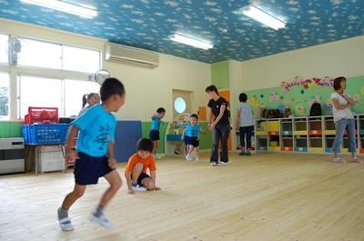 年少さん年中さんのお部屋には、パインという木の床板を貼りました。床に寝転がったり、裸足で走り回ったり、リフォームの効果は園児達の行動にさっそく表れているようです。