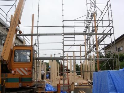 建て方の日が決まると、現場監督や大工は、一週間くらい前からずっと天気予報が気になります。それもそのはず、足元が悪い中、高い所に登り足を滑らせて落下してしまえば、大事故となってしまいます。お客様にとっても決して良い事とは言えない現場での事故は、ぜったいに防がなければならないのです。