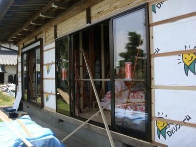 今回のリフォームでは、ごらんのように柱を隠す大壁としましたので、壁の中には断熱材もバッチリ充填。断熱サッシと併せ冬暖かく、夏涼しい家となること間違いなしです。