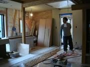 大工工事が順調に進んでおります。壁を抜く部分の梁補強を行い、サッシを交換し断熱材を入れ、床にはパネル式の床暖房設置し竹のフローリングを貼っています。